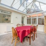 Spacious conservatory boasting central heating radiator, wall lights and carpeted flooring. Patio doors lead to the rear garden.