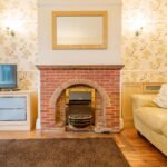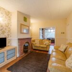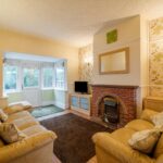 Spacious lounge with feature fireplace and rear door to the garden. Wall lights, central heating radiator and double doors through to the front reception room.