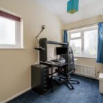 Having access from the master bedroom, walk in shower cubicle, low level flush WC and hand wash basin. Tiled walls, opaque window to front elevation, central heating radiator and ceiling light point.