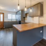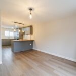 Spacious and modern open plan living, with the kitchen offering a range of base and wall units, including integrated appliances. With partially tiled splashbacks, and convenient breakfast bar. Patio doors lead to the rear garden along with windows to the front elevation, two central heating radiators, ceiling light points and spotlights.