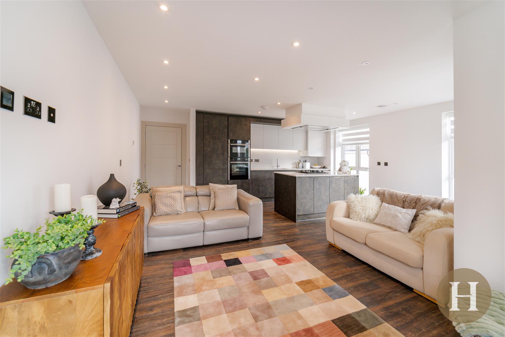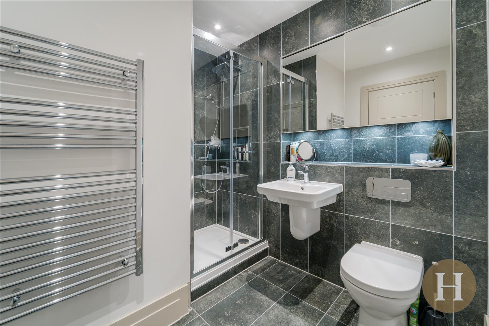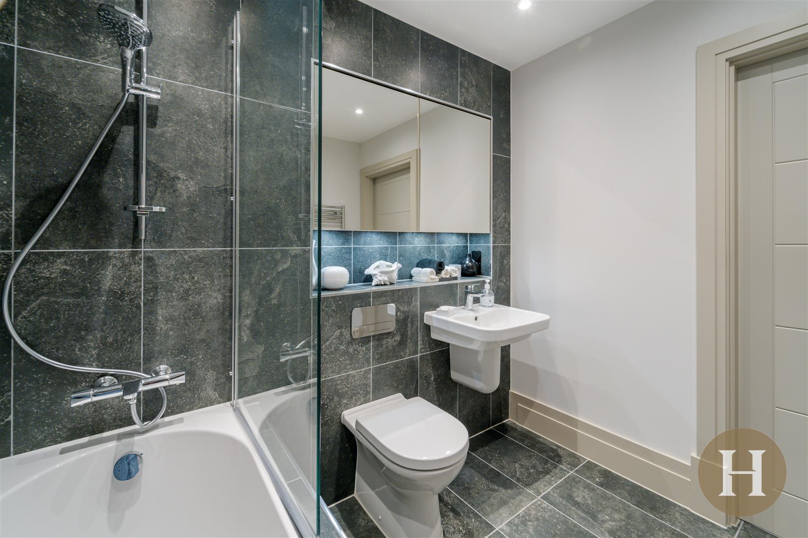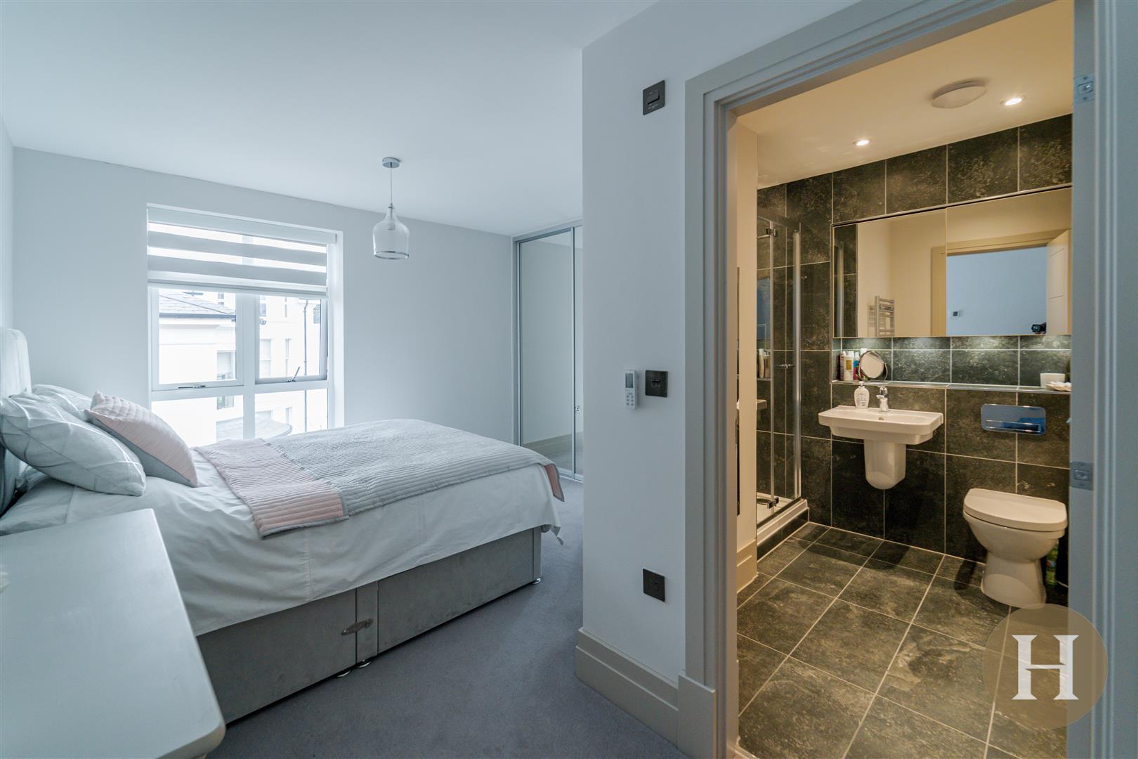 The apartment is located on the second floor, accessed via a communal entrance hall with lift access and further offers allocated parking bay, complete with EV charger. The apartment is finished to an excellent standard with high specification finishes and features throughout including an individually designed bespoke kitchen, Villeroy & Boch sanitaryware in the bathrooms, bespoke fitted wardrobes in the bedroom, contemporary black nickel switches and sockets, stylish five panel internal doors with polished chrome door furniture and under floor heating throughout.