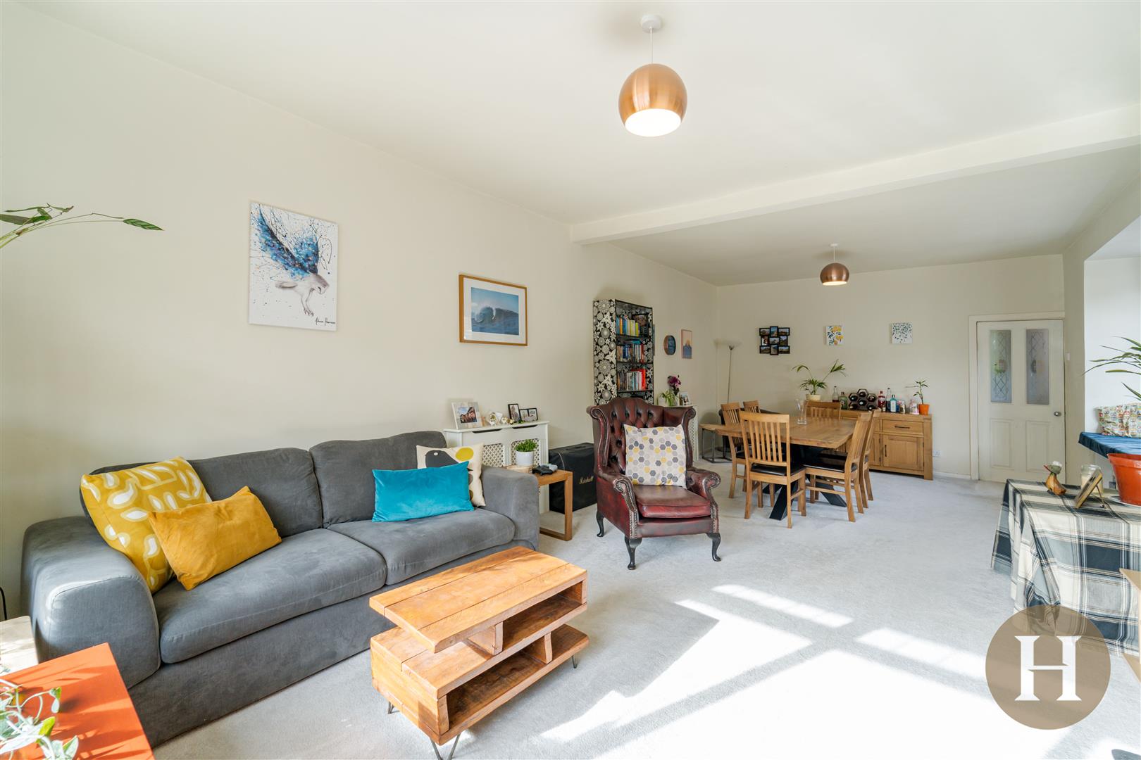 Extensive lounge and dining area boasting feature log burner, dual aspect windows to the side and front elevation. Central heating radiators and ceiling light points.