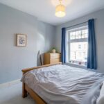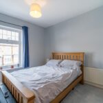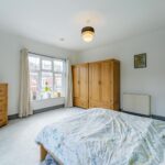 Double bedroom with windows to the front elevation, internal storage cupboard, central heating radiator and ceiling light point.