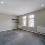 Two central heating radiators, power points, ceiling spotlighting and two double glazed windows to front.