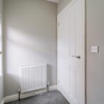 Central heating radiator, power points, ceiling light point and double glazed window to rear.
