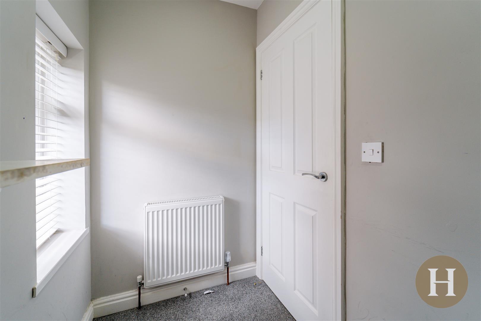 Two central heating radiators, laminate flooring, understairs storage/cloaks cupboard and double glazed window to rear.