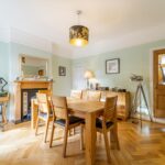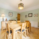 Open plan dining room with kitchen off, fireplace and surround along with understairs storage. Patio doors lead out to the rear garden, central heating radiator, ceiling light point and traditional coving.