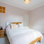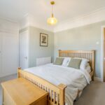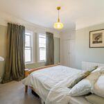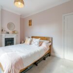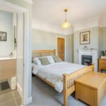 The master bedroom benefits from two sash windows to the front elevation, feature fireplace and fitted wardrobe. Ceiling light point, central heating radiator and access to master ensuite.