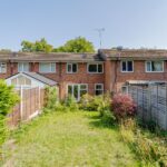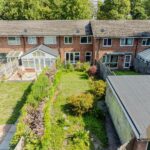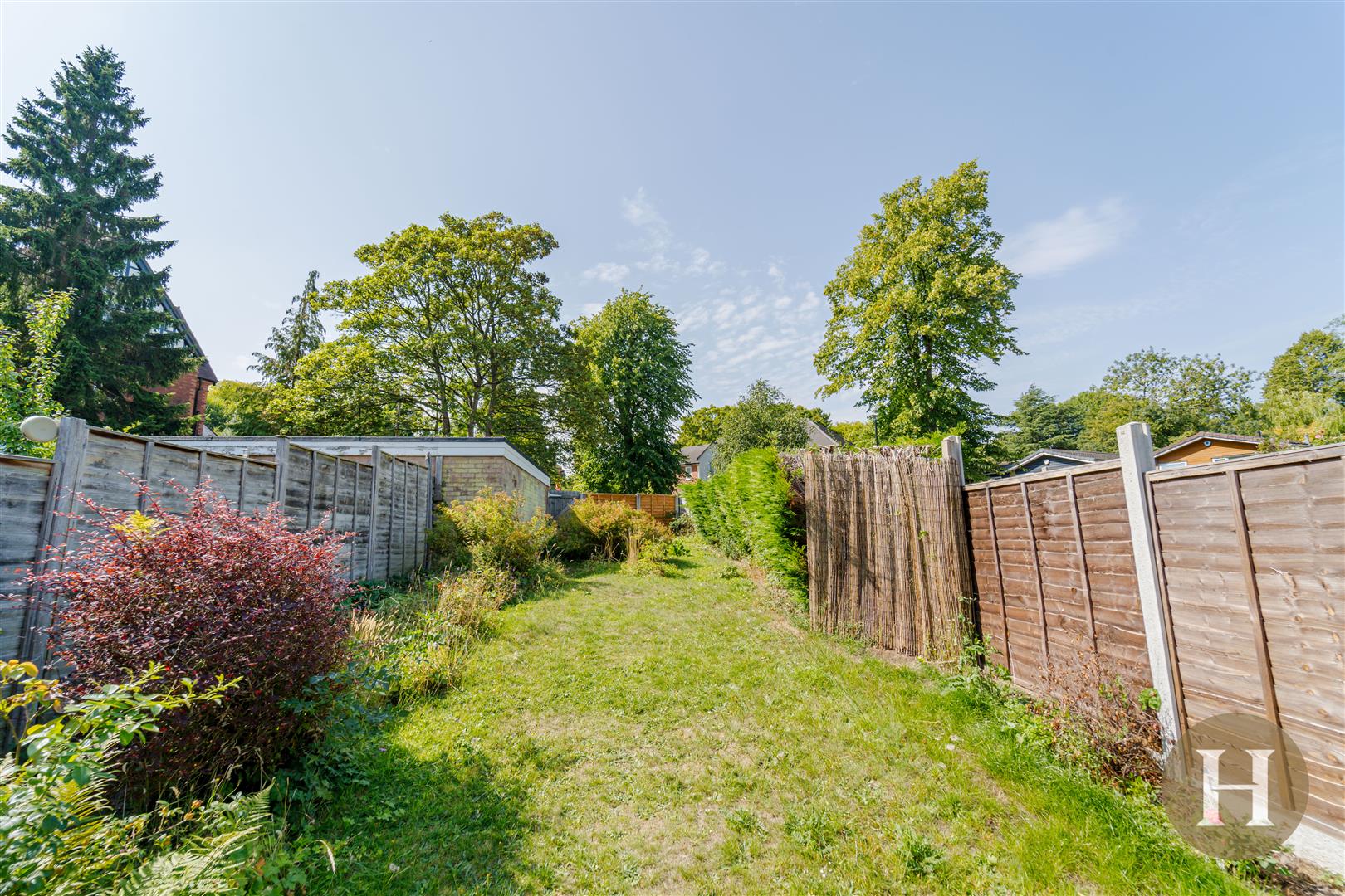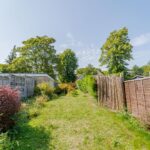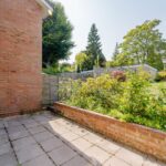 Private rear garden, predominantly laid to lawn. Including paved patio area and rear access to single garage en-bloc.