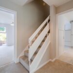 Landing space offering internal storage cupboards, carpeted flooring and ceiling light point.