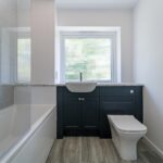 Brand new fitted kitchen boasting a range of base and wall units, including integrated appliances. Extractor over, sink unit and space for washing machine or dishwasher. Tiled flooring, partially tiled splashbacks and double glazed window to the front elevation. Access to the kitchen can also be sought via the hallway, with glazed internal door.