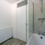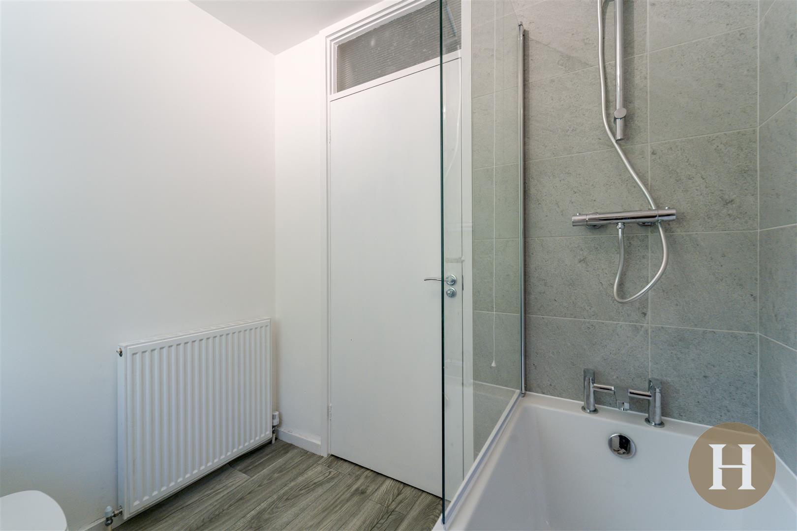 Modern bathroom suite, with mains shower over bath and glass shower door. Fitted vanity unit including concealed cistern and WC. Obscure glazed window to the front elevation, ceiling light point, shaving point and gas central heating radiator.