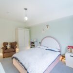 Spacious double bedroom boasting fitted wardrobe, double glazed window to front elevation, carpeted flooring and central heating radiator. Recessed downlights and ceiling light points.