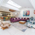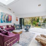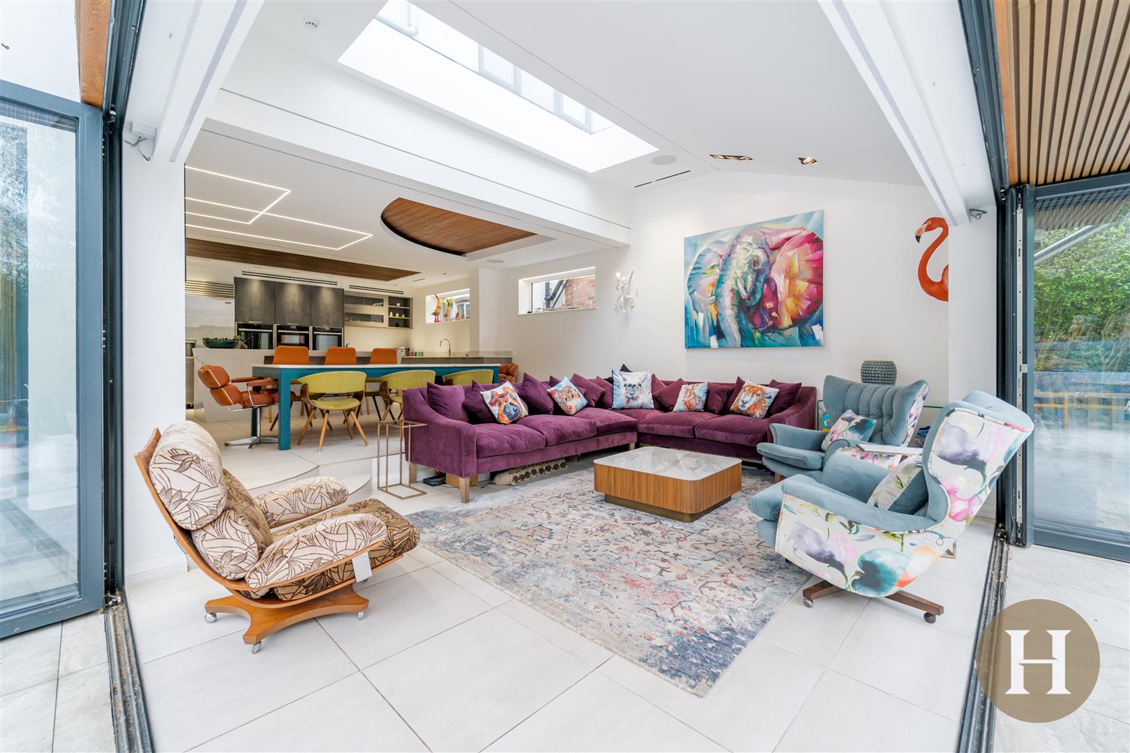 Feature skylight, recessed downlights and LED lighting. Double glazed windows to the side elevation, tiled underfloor heating, built in sound system and bespoke open corner bi-fold doors.