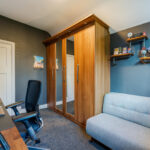 Double bedroom with carpeted flooring, window to rear elevation, gas central heating radiator and fitted wardrobes.