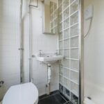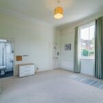 Tiled ensuite with a double glazed obscure sash window to front elevation with lavatory style WC, wall mounted wash hand basin, walk in shower cubicle with electric shower, radiator and extractor fan.