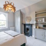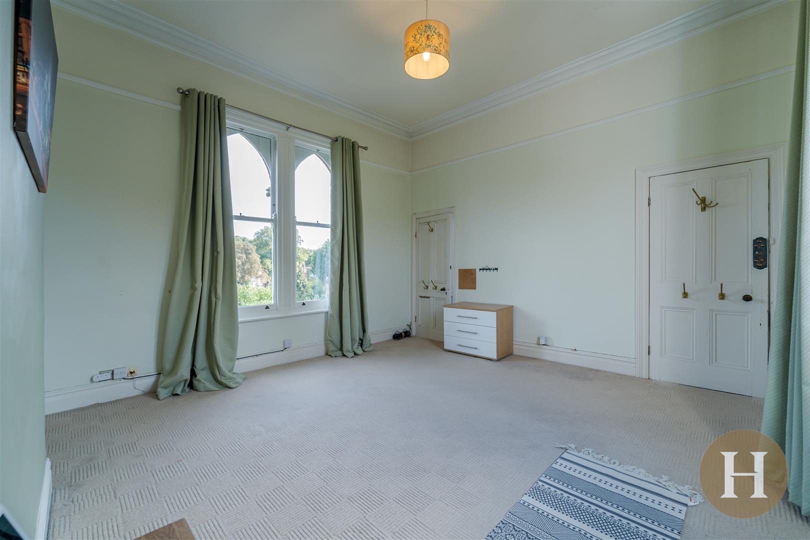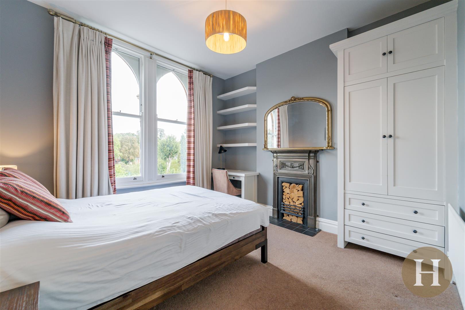 Double glazed sash windows to front elevation, feature cast iron fireplace, fitted wardrobes, shelving and central heating radiator.