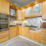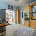 Fitted kitchen with a range of base and wall units, work surfaces and tiled splashback. Sink and drainer, integrated double oven and four ring gas hob with extractor over. Integrated dishwasher and space for fridge freezer, along with dining table and chairs. Double glazed sash window to rear elevation and central heating radiator.