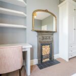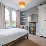 Two double glazed sash windows to front elevation, feature cast iron fireplace, fitted wardrobes, shelving and central heating radiator.
