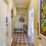 A hardwood entrance door leads into the entrance vestibule with decorative stained glass to the front elevation, with a secondary wooden door with decorative glass leading into the hallway, Minton tile flooring throughout, central heating radiator, providing stairs to first floor and doors into ground floor rooms.