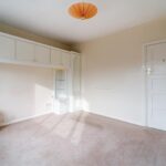 Double bedroom with built in storage cupboard, window to front elevation, carpeted flooring, ceiling light point and radiator.