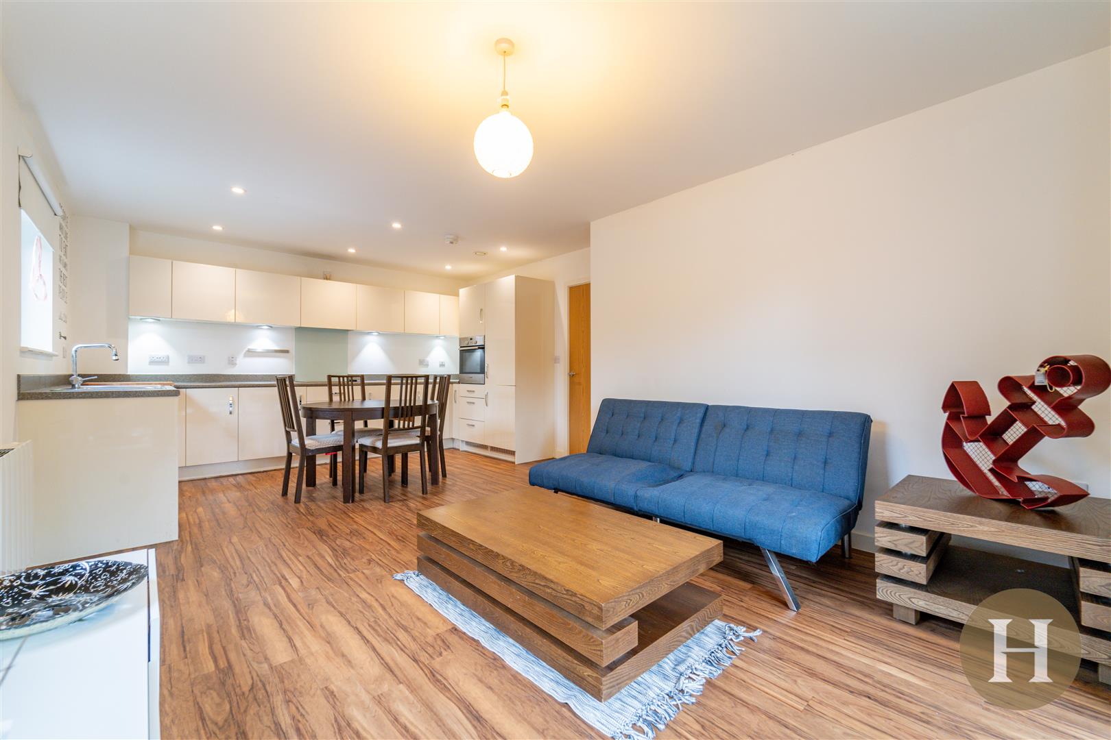 Master bedroom with en-suite shower room, a further double bedroom and family bathroom. The apartment further benefits from an open plan modern fitted kitchen and living area, boasting patio doors to a private patio area.
