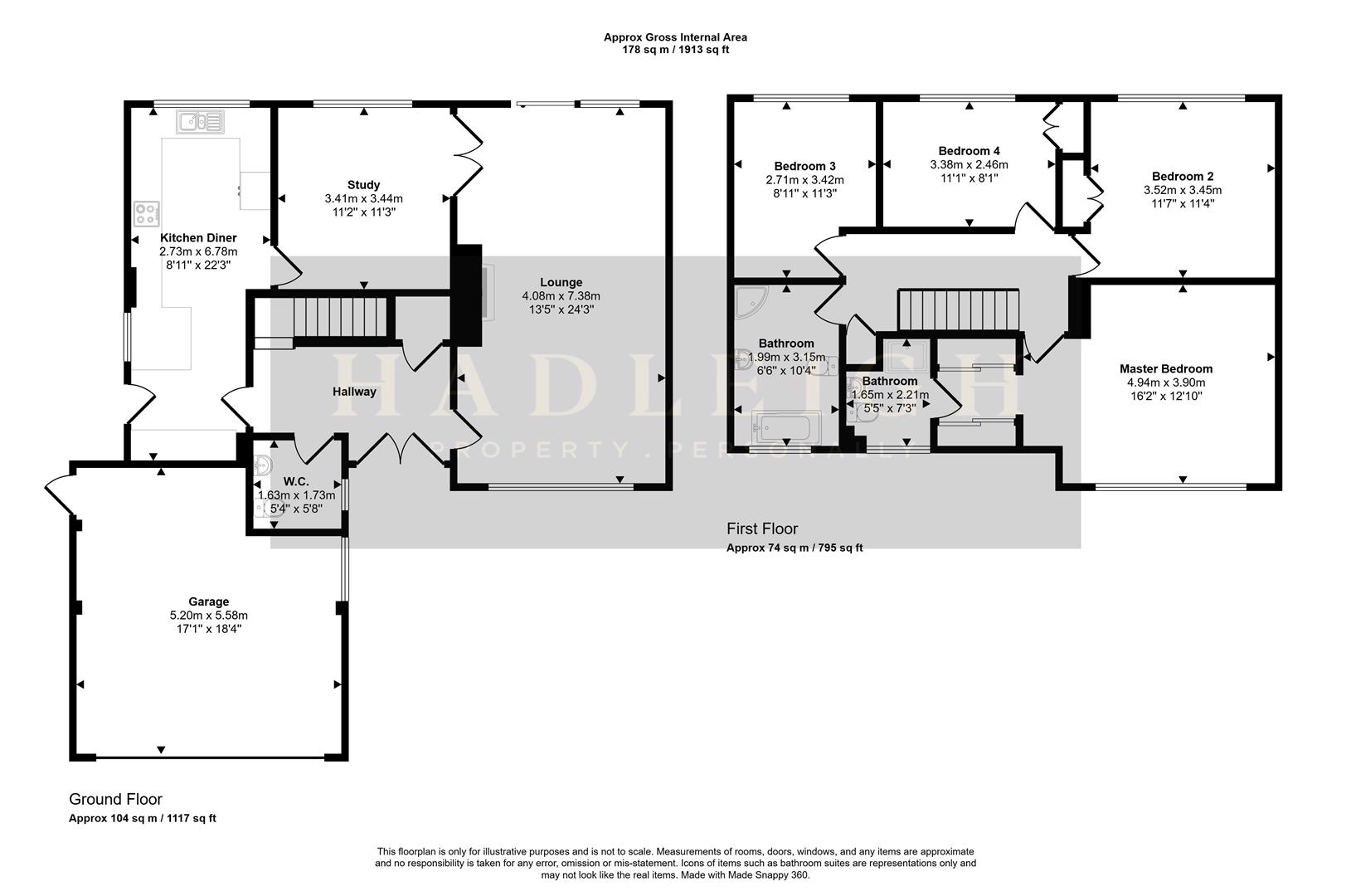 The first floor offers a superb principal bedroom suite, beautifully appointed with a mirrored walk-in wardrobe and stylish en-suite shower room, creating a refined private retreat.