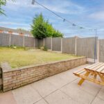 Paved patio, mainly laid to lawn with fencing to boundaries and gated access to the front elevation.