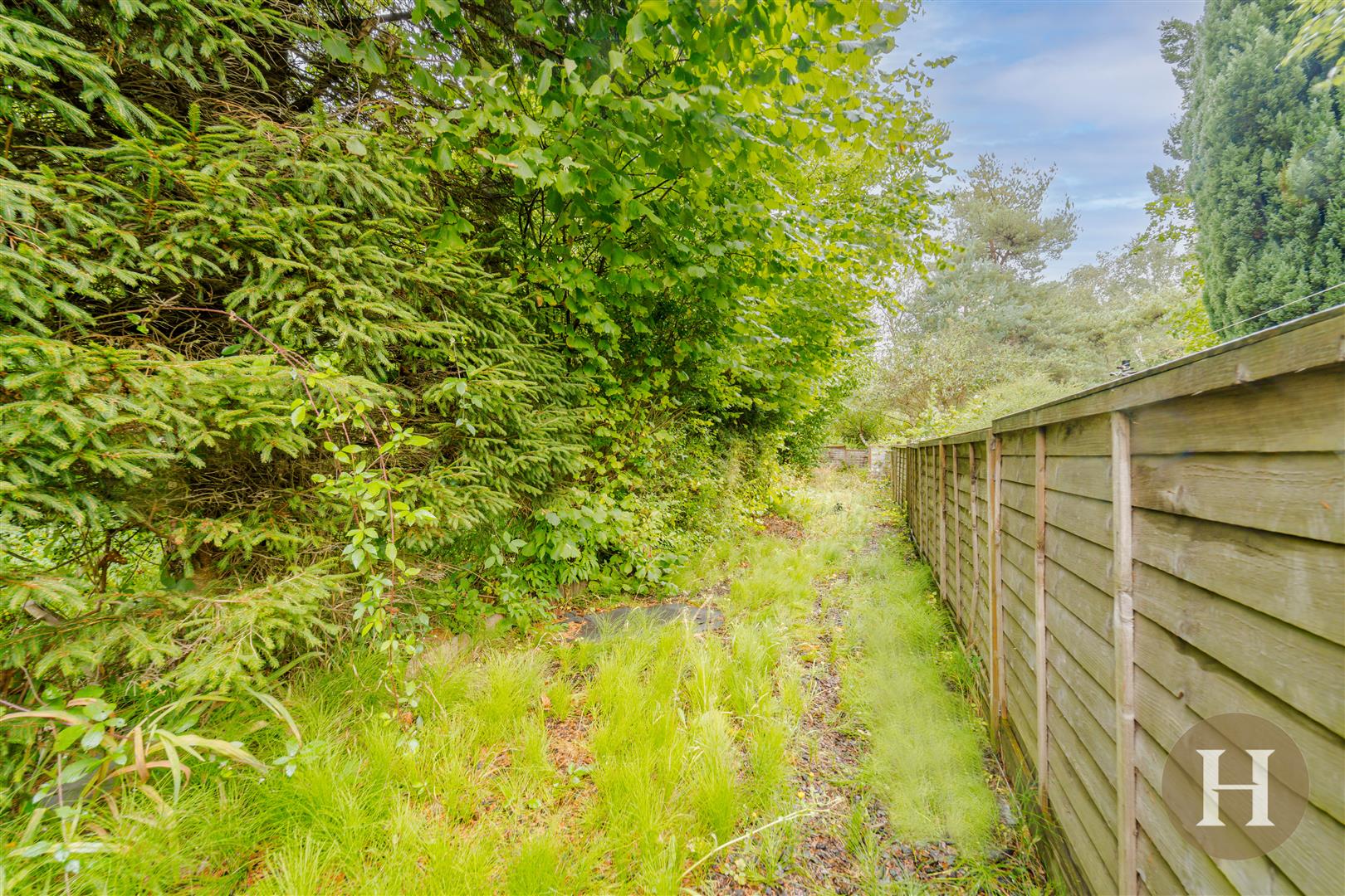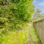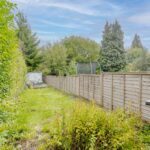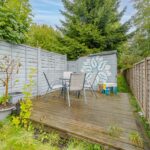 Large rear garden predominantly laid to lawn, decked seating area and fenced boundaries.