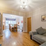 Spacious and welcoming through lounge and dining room, benefitting from many traditional features, including coving and ceiling rose. Feature fireplace with log burner, two central heating radiators and bay window to the front elevation. Offering access to the study.