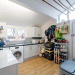 Spacious utility room benefitting from plumbing for utilities, sink and drainer unit and ample storage cupboards. Windows to the rear and side elevation along with rear door. Partially tiled splashbacks, ceiling light point and central heating radiator.