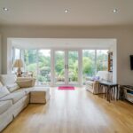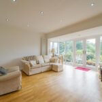 Newly fitted UPVC French doors and windows to rear elevation, feature fireplace with burner. Ceiling spotlights, central heating radiator and Engineered Oak flooring.