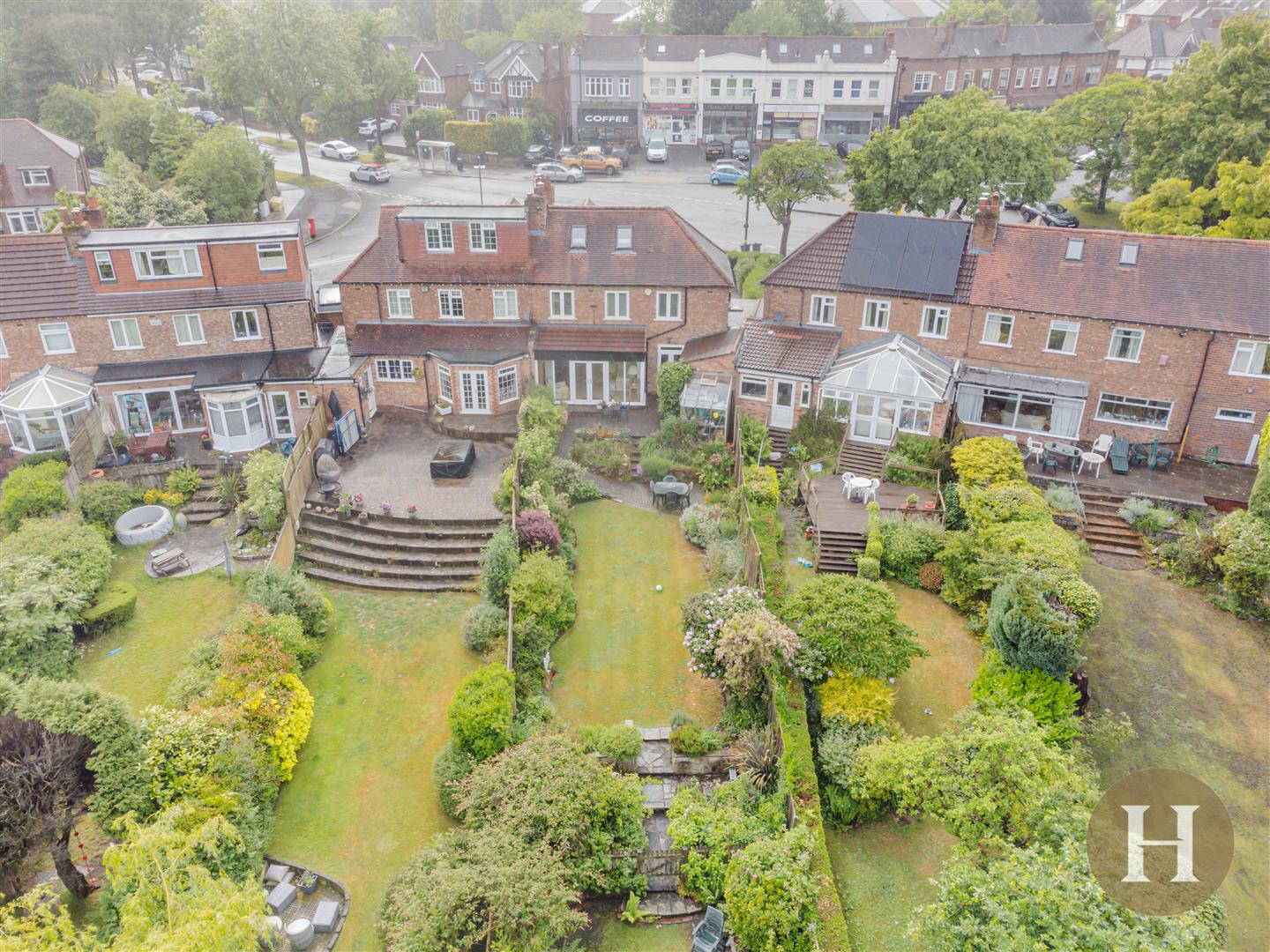 Extensive private rear garden, predominantly laid to lawn. Consisting of mature shrubs and trees and paved patio area. Path leads to the bottom of the garden with additional space for shed.