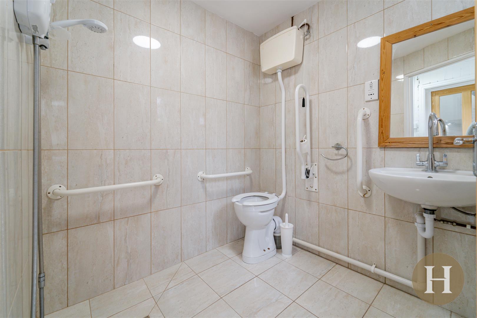 Double glazed window to side elevation, tilled floors and walls, electric shower, hand wash basin and WC.