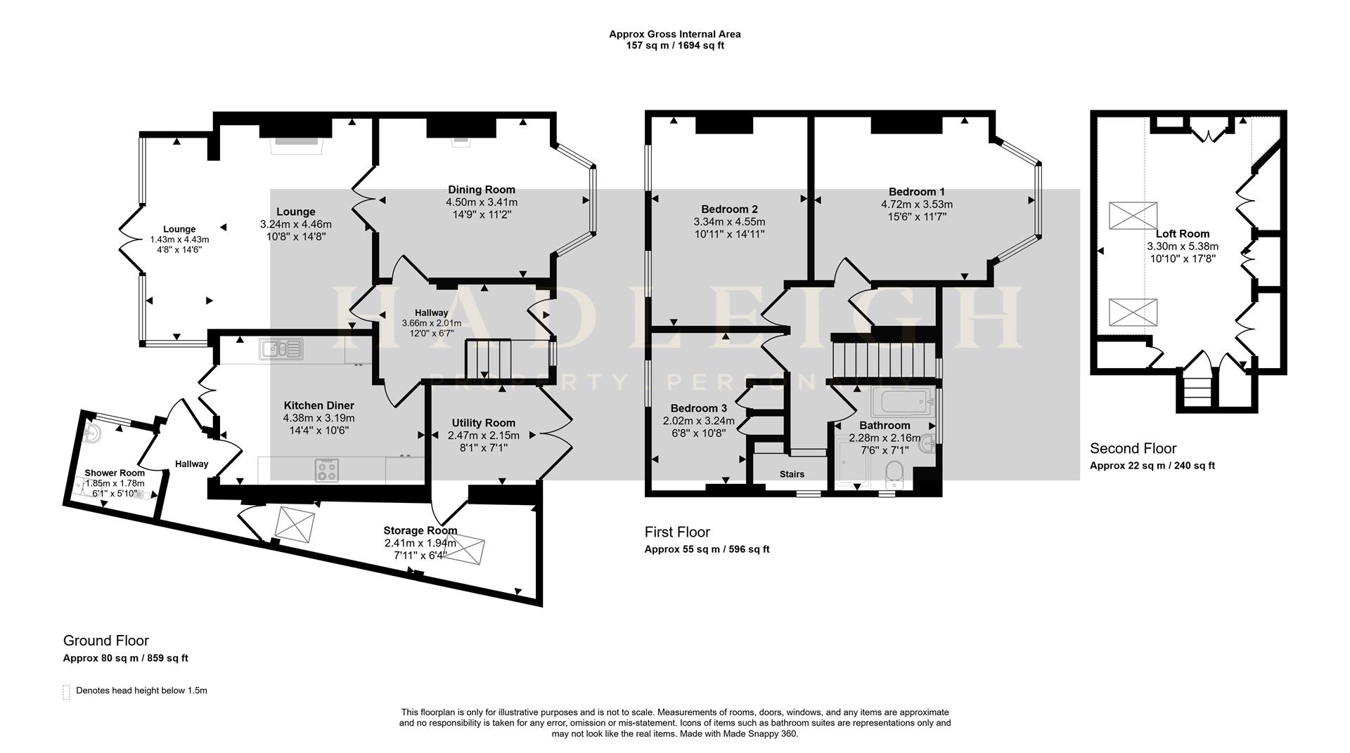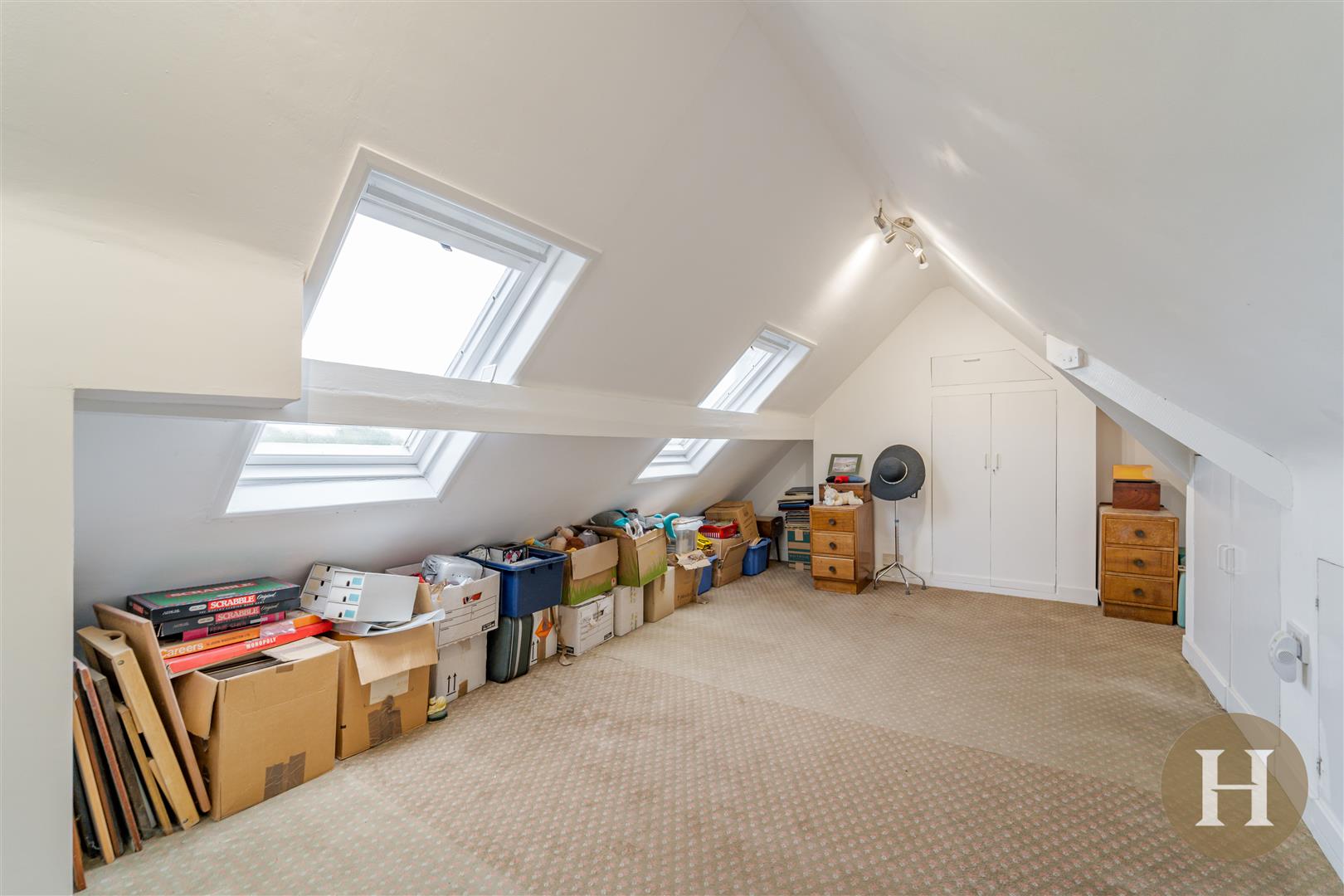 Benefitting from an additional loft room accessed via staircase, two skylights, ceiling light points and ample eaves storage.