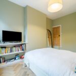 Spacious double bedroom benefitting from internal storage cupboard, sash window to rear elevation, traditional style radiator, parquet flooring and ceiling light point.