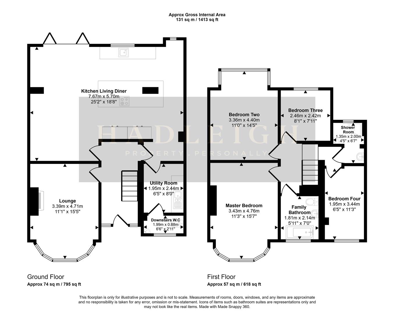 The property is approached via a large driveway, offering parking for multiple cars. A spacious and welcoming entrance hallway, with front lounge benefitting from bay window and bespoke shutters. The rear of the property boasts an extensive extension, offering an open plan kitchen, living and dining area. Bi-fold doors give access to the private garden and the modern kitchen boasts underfloor heating, ample storage space, integrated appliances and ideal kitchen island. Further adding to the ground floor is a convenient utility room and guest WC.