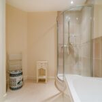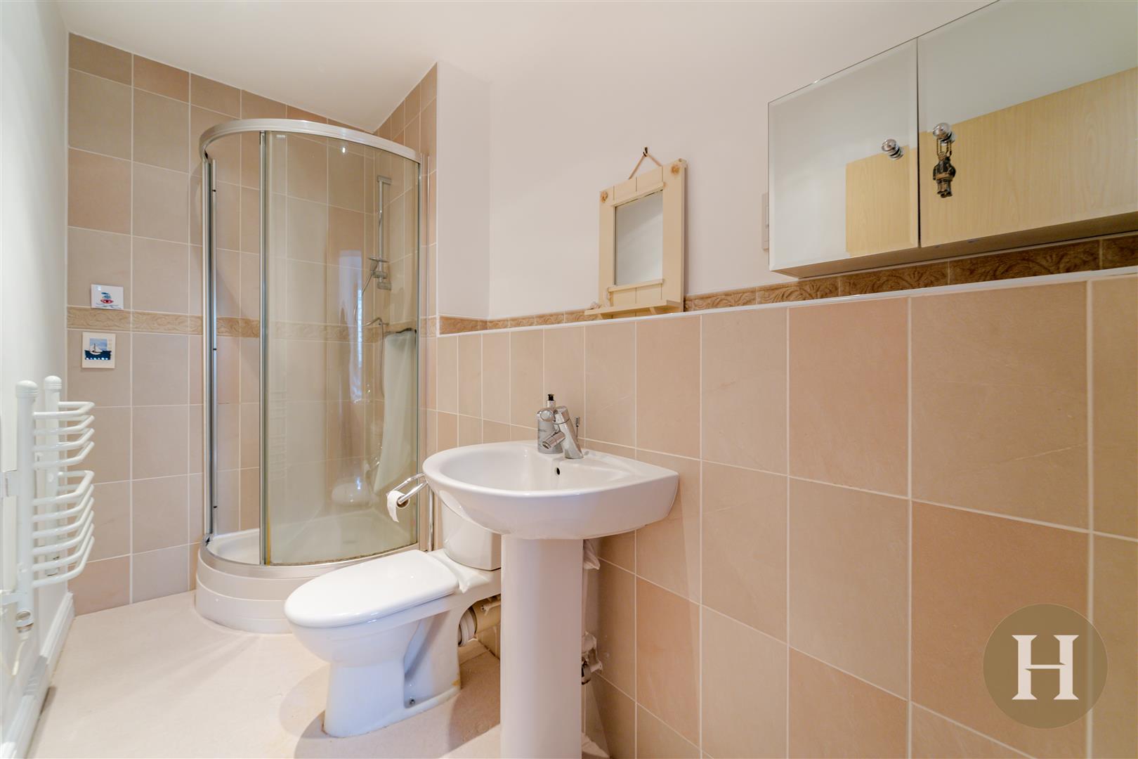Partially tiled ensuite with walk in mains shower cubicle, low level flush WC and hand wash basin. Electric towel radiator, ceiling spotlights and extractor fan.
