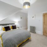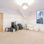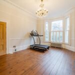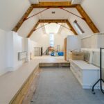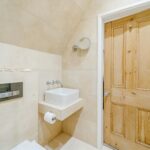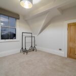 Bedroom four is a further multi purpose room, previously used as a gymnasium. With windows at both ends, two roof lights and a spiral staircase in the corner leading down to the coachhouse/garage. There is a shower cubicle in the corner of the room. Heating is provided by wall mounted electric heaters.