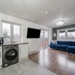 The lounge and dining area boasts two Juliet balconies, radiator and ceiling light point.