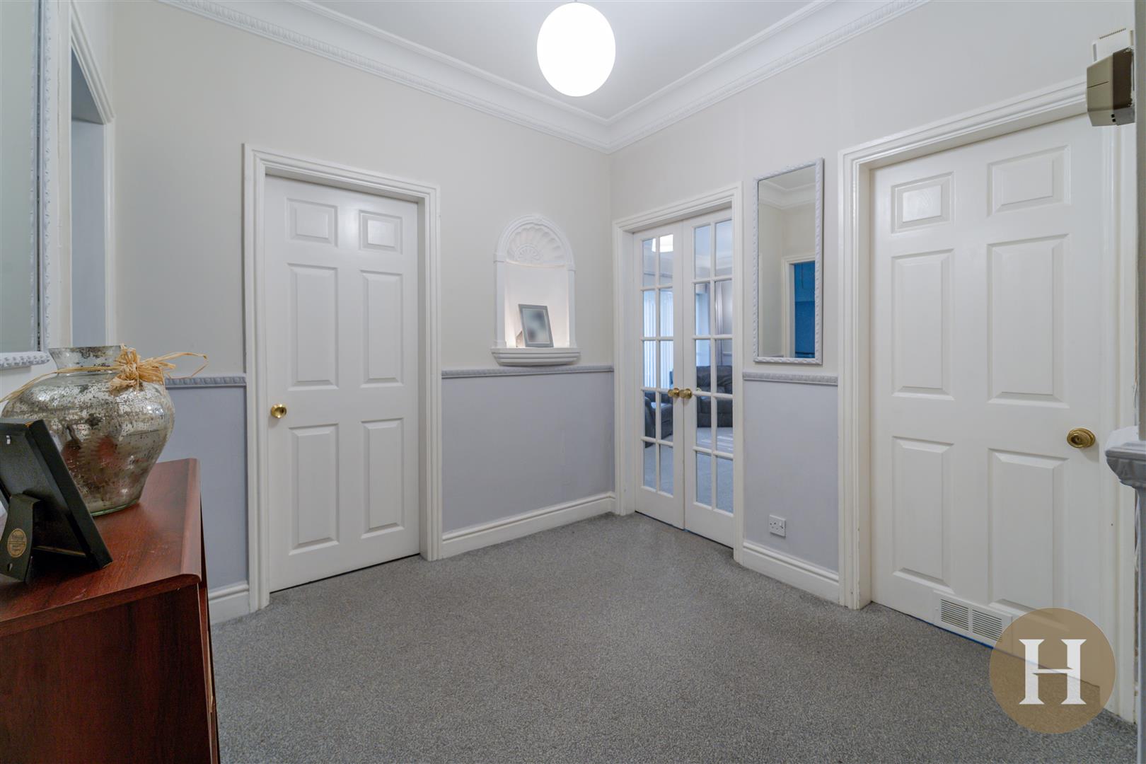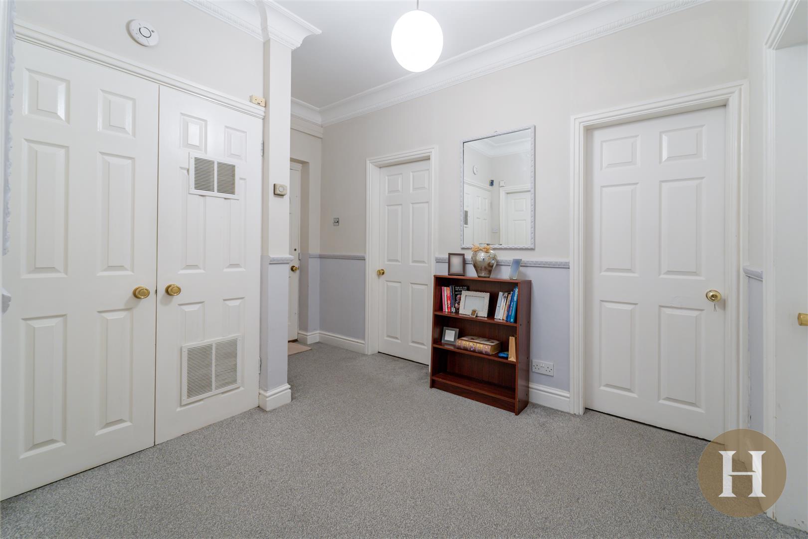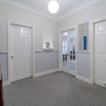 Spacious entrance hallway benefitting from storage cupboard, coving and ceiling Rose. Solid wood front door, carpeted flooring and ceiling light point.